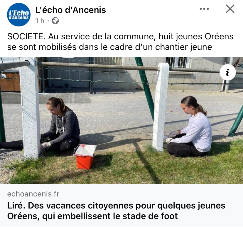 Découvrez l’article de l’Echo d’Ancenis sur des travaux réalisés dans le stade de Liré par des jeunes de la commune !