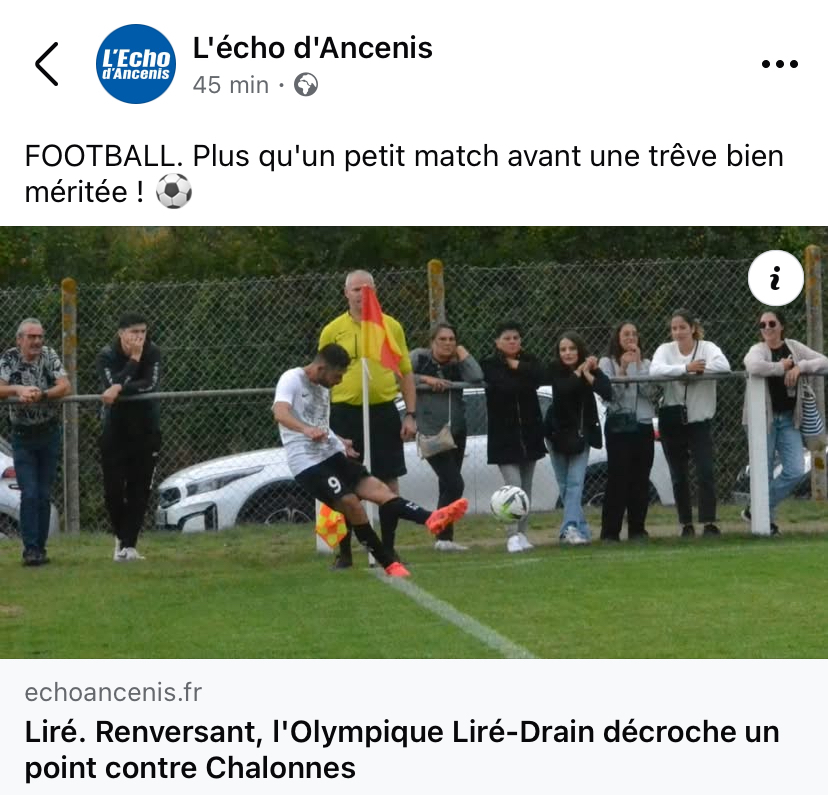 Article site internet : Football. Renversant, l'Olympique Liré-Drain décroche un point contre Chalonnes