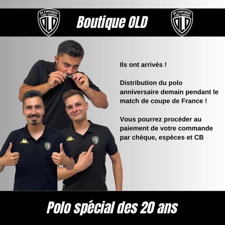 Distribution du polo anniversaire 20 ans demain lors du match de coupe de France à Liré !