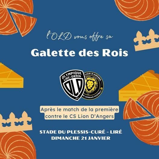 Dimanche à l'issue du match des SENIORS A contre le Lion d'ANGERS en championnat R3 à LIRÉ, le club organise sa traditionnelle galette des Rois. Nous vous attendons nombreux au stade pour partager ce moment de convivialité !