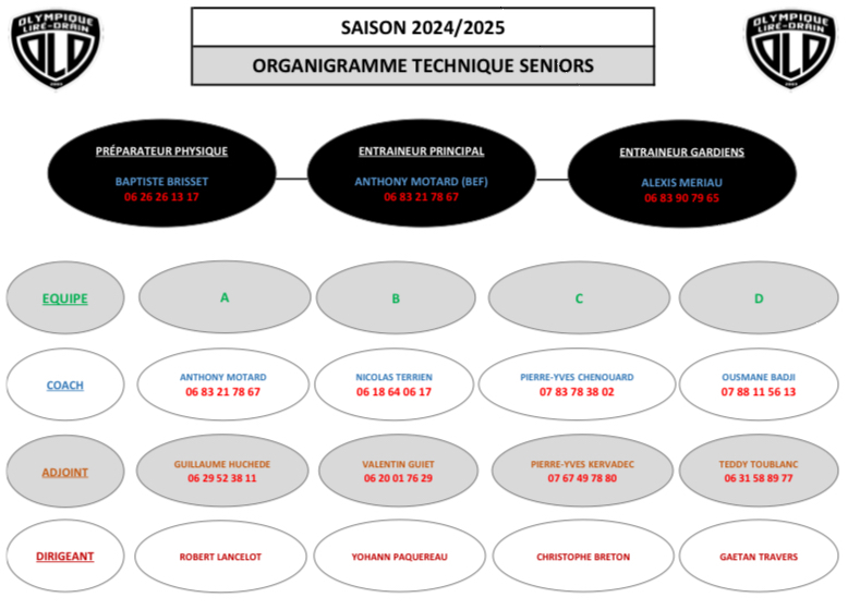 Découvrez l'organigramme TECHNIQUE SENIORS pour la saison 2024/2025 !