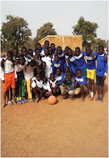 Deux équipes de foot Burkinabé portant fièrement nos maillots.