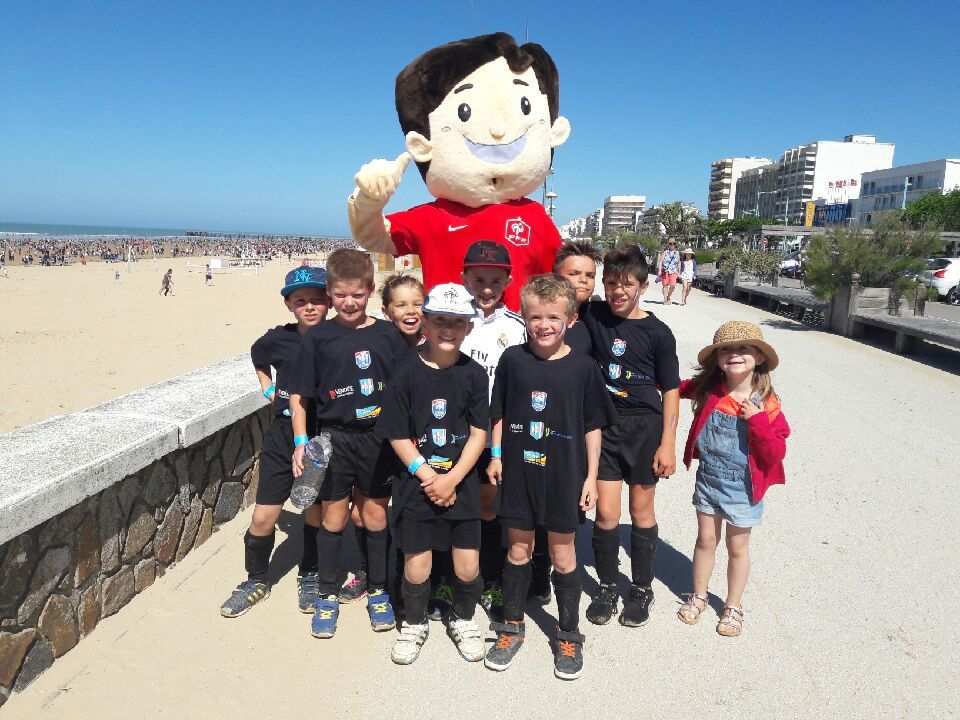 - A commencer par nos U8/U9 qui ont passé une journée inoubliable à St Jean-de-monts dans le cadre de foot Océane (cf photo d'une petite partie de la troupe en compagnie de la masquotte).