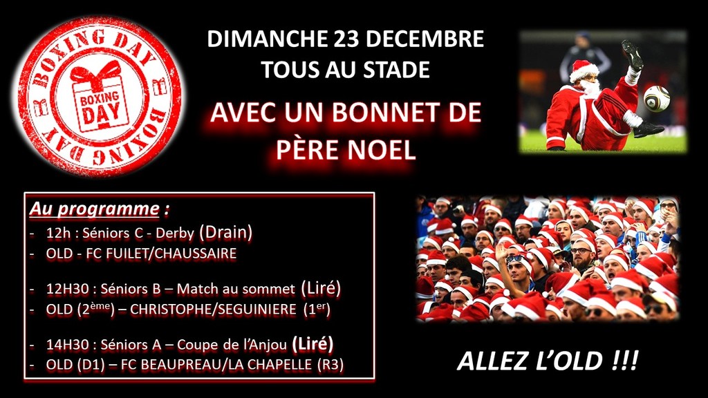 Histoire de passer un dimanche sympa...venez au stade avec un bonnet du Père Noël (sans oublier l'écharpe de l'OLD).
