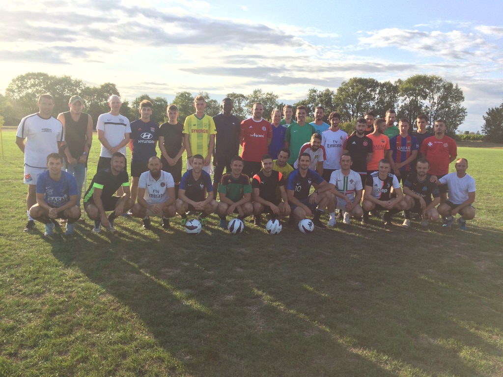 33 joueurs séniors ont repris l'entraînement ce lundi soir avec la présence remarquée de Félix MOREAU, remis de ses acrobaties à la fête du cheval (en béquilles sur la photo où il manque Clém RENOU tout juste arrivé du boulot),