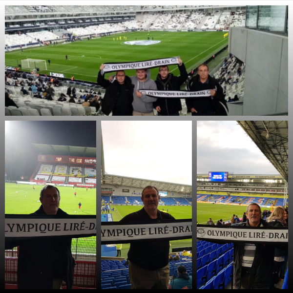 Pour commencer bravo à nos globes trotters du week-end (en photo): Phiphi GONTIER (qui a passé un week-end so foot british grâce et avec Nico et Oliv) qui a arboré l'écharpe de l'OLD à Rouen (contre Cholet en national), à Brighton (contre Norwich en 1ère league) et enfin à Chrystal Place (contre Leicester en 1ère league). Et ce dimanche ce sont Marco DOIZON (notre arbitre officiel), Pascal CHARBONNIER (Supporter inconditionnel de l'OLD), Freddy TERRIEN (Dirigeant des séniors B) et Anthony DOIZON (Attaquant de l'OLD) qui l'ont imité en direct du Matmut Atlantique pour le derby de l'Atlantque (Bordeaux-FCN). BRAVO, MERCI ET BON RETOUR A VOUS!!!