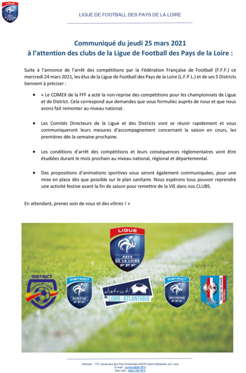 OFFICIEL: ARRET DES CHAMPIONNATS AMATEURS