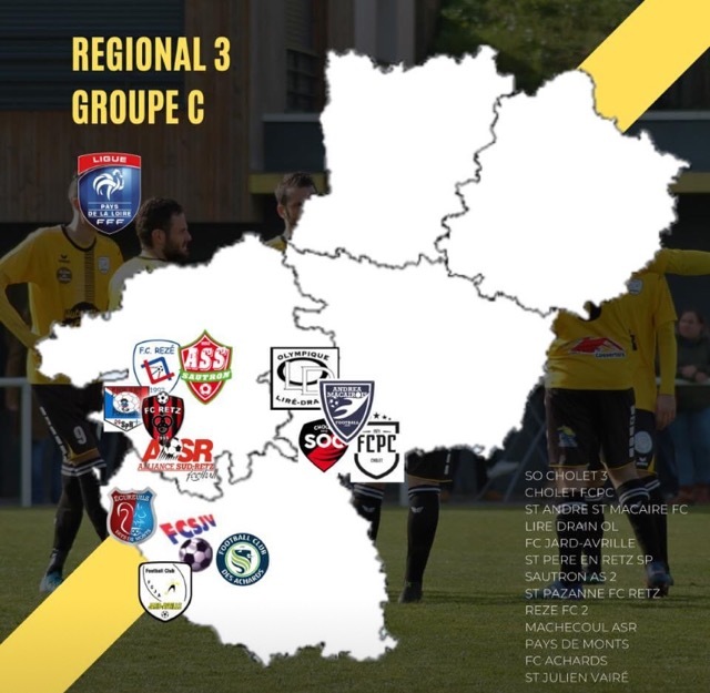 1/ ST PERE EN RETZ S.P. 2/ SAUTRON A.S. 2 3/ STE PAZANNE F.C. RETZ 4/ REZE F.C. 2 5/ MACHECOUL A.S.R. 6/ PAYS DE MONTS E. 7/ ST JULIEN VAIRE 8/ LES ACHARDS F.C. 9/ JARD AVRILLE FCJA 10/ O. LRE DRAIN 11/ S.O. CHOLET 3 12/ CHOLET F.C.P.C. 13 / FC ST ANDRE ST MACAIRE.