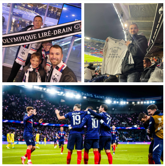 Pour finir en photo la présence de l'O.L.D. au Parc des princes hier soir pour encourager les bleus: Baptiste BRISSET, François et Charly DAVODEAU, Jérôme et Léo POILASNE.