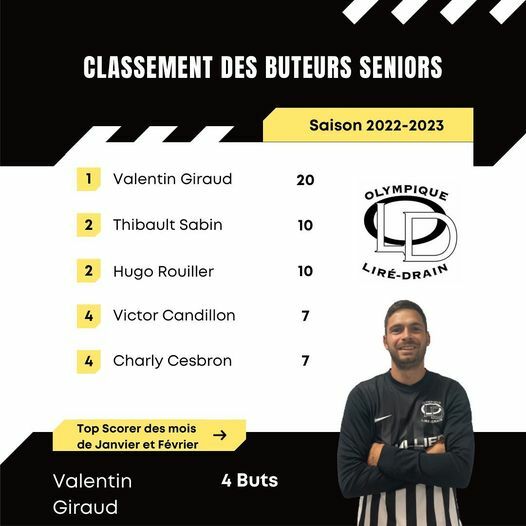 Découvrez le meilleur buteur sur JANVIER/FEVRIER et le TOP 5 des buteurs en compétitions officielles depuis le début de saison...