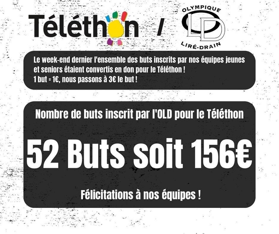 Découvrez la somme récoltée pour le TELETHON avec les buts inscrits ce week-end par le club.