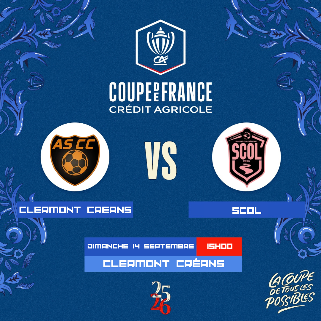 Après avoir éliminé le Réveil de St Géréon au 2ème tour, nos roses et noirs vous attendent nombreux à Clermont Créans le dimanche 14 septembre à 15h00 pour les soutenir.