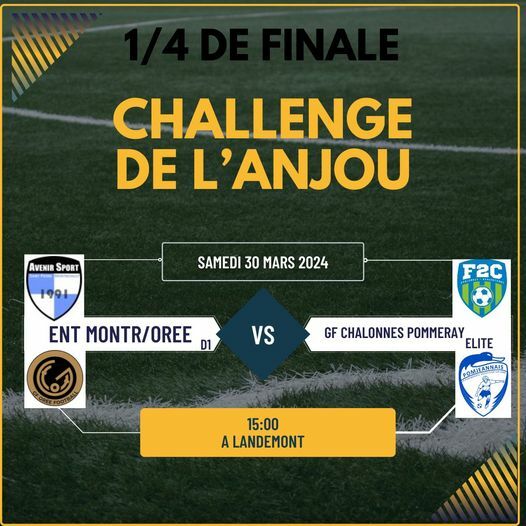 Nos U18F recevront samedi à 15h00 sur le terrain de LANDEMONT le GF CHALONNES POMMERAY (Elite) en 1/4 de Finale du Challenge de l'Anjou.