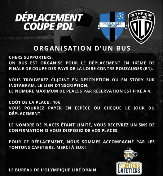 Découvrez le lien pour s'inscrire, si vous souhaitez faire le déplacement en bus pour le 16e de finale de coupe des Pays de la Loire à Pouzauges, samedi 3 février !