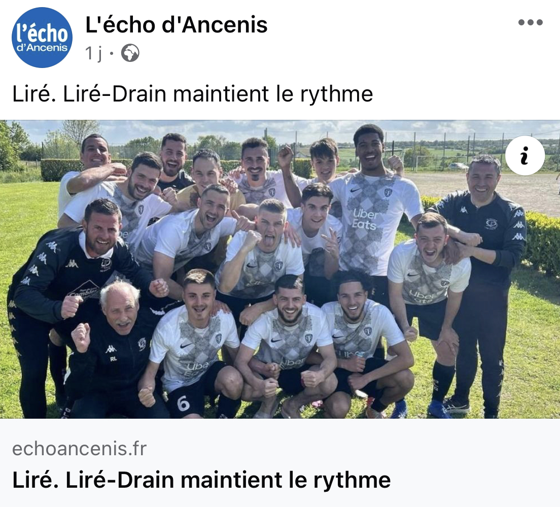 Découvrez l'article de presse sur la victoire des SENIORS A face à Martigné sur Mayenne dimanche dernier à Liré !