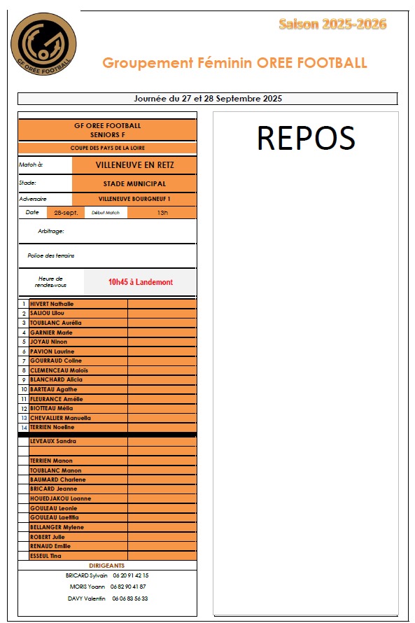 CONVOCATIONS GFOF (U11/U13/U15/U18/SENIORS) 04/10