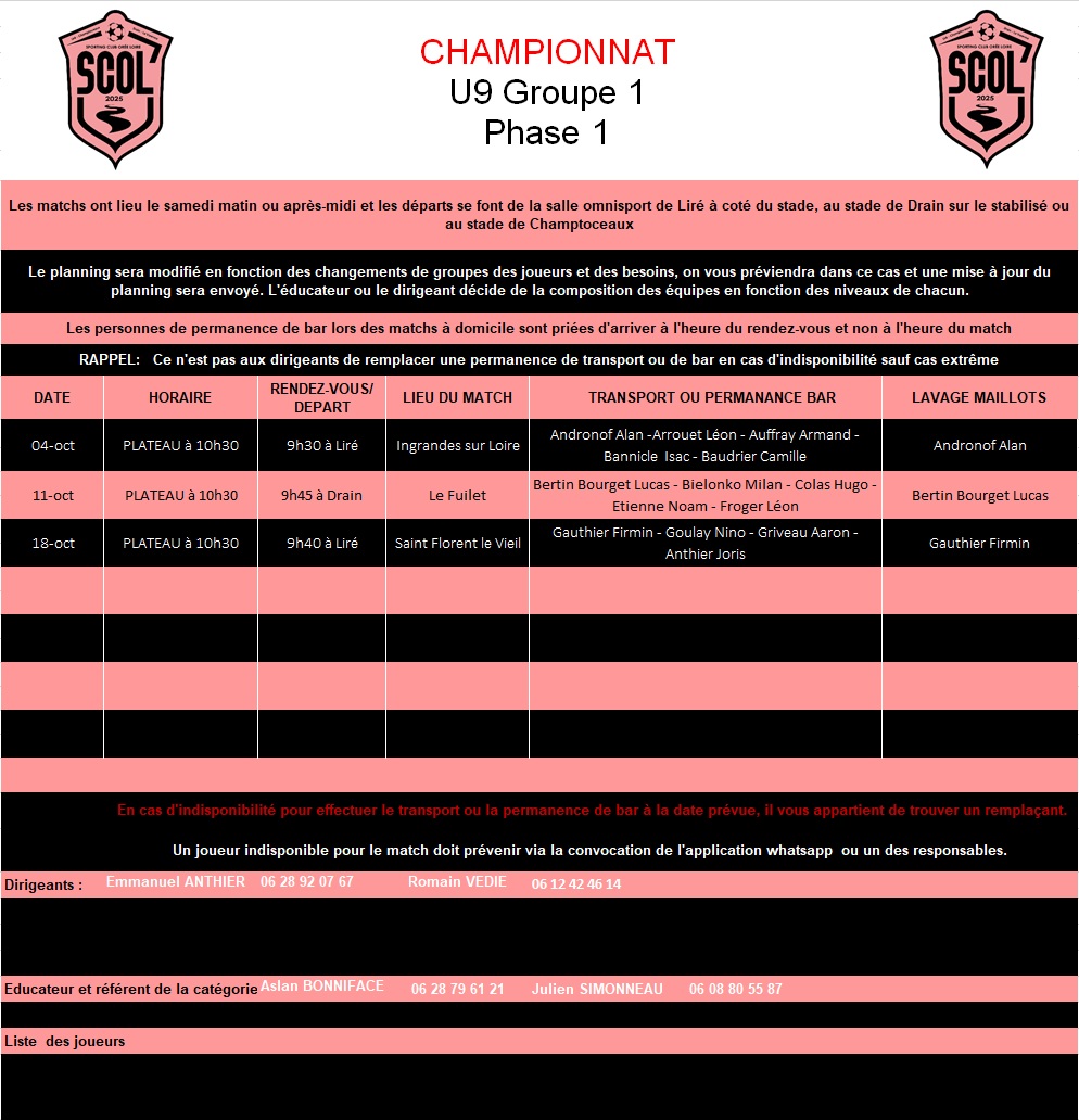 PLANNING U7 - U9 (👈⚽️ NEWS)