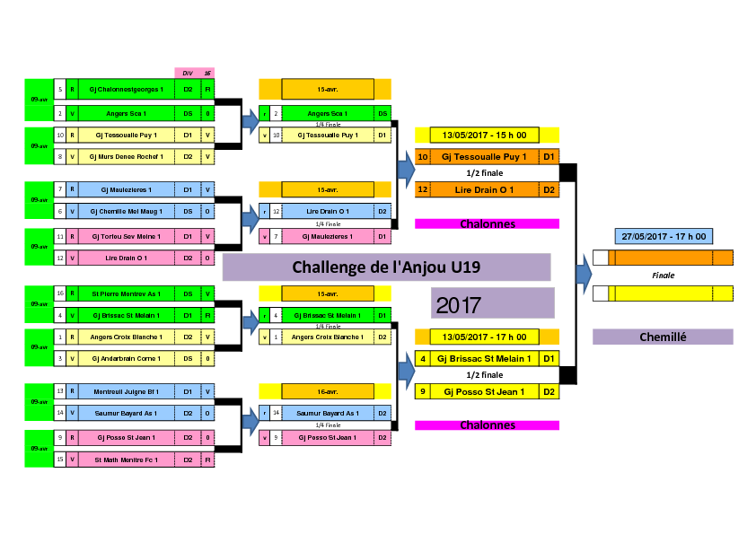 1/2 finale du challenge de l'Anjou U19 fixé au samedi 13 mai 2017 à 15H à Chalonnes/Loire