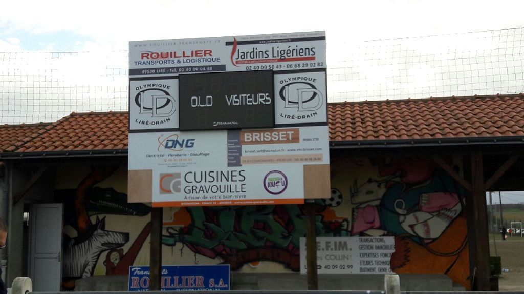 - Samedi 4/02/2017: Installation du panneau d'affichage électronique sur le stade de LIRE grâce au concours de nos sponsors: ROUILLIER transports & logistique, Les JARDINS LIGERIENS, DNG Electricité-Plomberie-Chauffage, SARL BRISSET et LES CUISINES GRAVOUILLE. Un grand merci à Mimi, Christian, Daniel, Pascal et Jean-No pour le montage et installation. Un nouveau panneau avec le logo du club sera installé cette semaine sur le terrain de DRAIN.