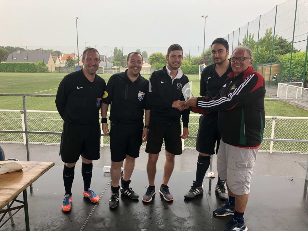 Un grand merci aux bénévoles, aux partenaires du club, aux parents et aux dirigeants des équipes qui nous ont offert un tournoi fair-play, challenge que l’équipe de Lire Drain s’est fait offrir par le président de l’OMS de Pornichet. (Cf photo: remise du trophée à Val, éducateur O.L.D.).