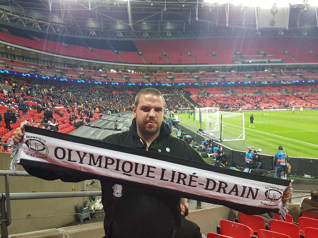 Après Arsenal FC (Phiphi et Raph), après Benfica Lisboa (Adeline et Clem), c'est au tour d'Olivier GONTIER d'arborer fièrement l'écharpe de l'OLD du côté de Wembley dans le cadre de l'affiche Ligue des Champions opposant les Spurs de Tottenham à l'Inter de Milan.