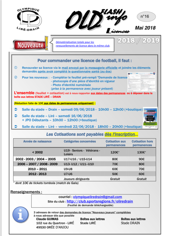 Toutes les infos dans la rubrique mise à jour : Licences 2018 /2019