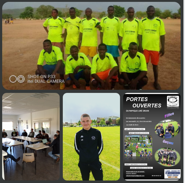 En photos également: Réunion de bureau de vendredi, Photo du Bénin lors d'une fête au Collège Sainte Thérèse Maria Laura de Cobly, match profs élèves avec les maillots de l'O.L.D....