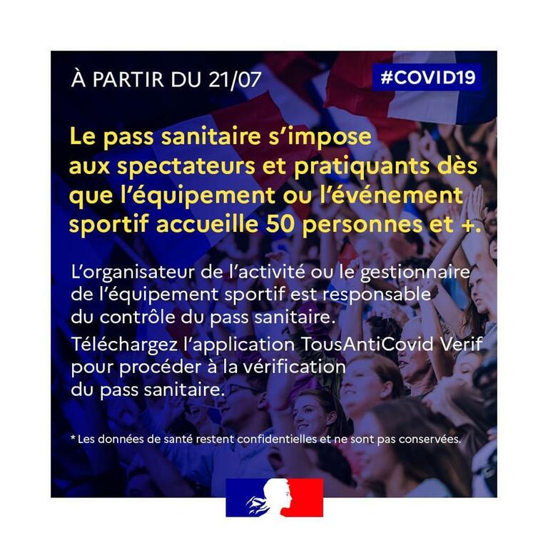 Dans le cadre des mesures concernant le Pass Sanitaire dans le sport (dont l''extention du pass sanitaire pour l'accès aux établissements recevant du public dont les stades de football) et suite au communiqué de la FFF du 1/08/2021 sur les conditions de la reprise de la pratique (dont la mise en oeuvre du pass sanitaire) et dans l'attente des décrets d'application et des consignes (précises) de notre ligue de football,
